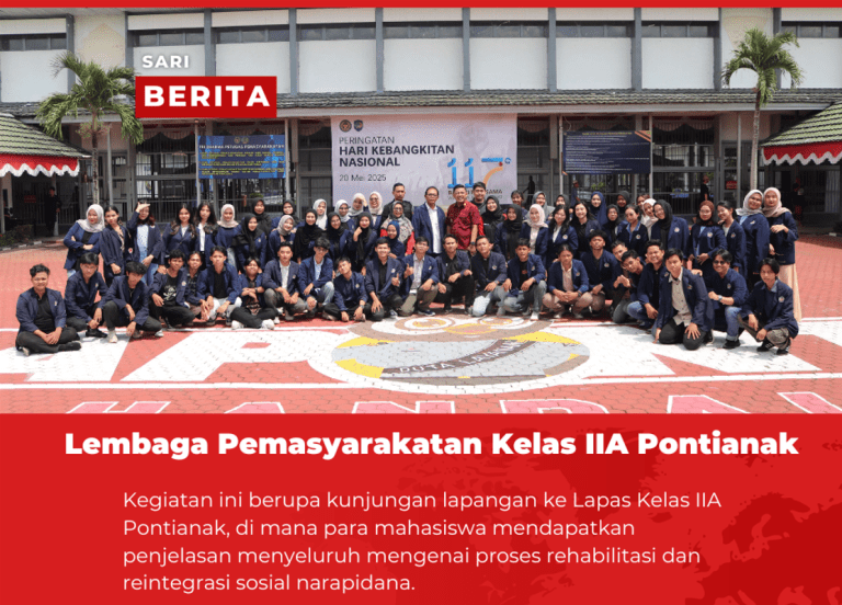 Pontianak — Fakultas Hukum Universitas Tanjungpura (FH Untan) secara resmi membuka rangkaian kegiatan Pengenalan Kehidupan Kampus bagi Mahasiswa Baru (PKKMB) Tahun 2025 pada hari Senin, 4 Agustus 2025. Kegiatan pembukaan diawali dengan upacara bersama di halaman Rektorat Universitas Tanjungpura, yang…
