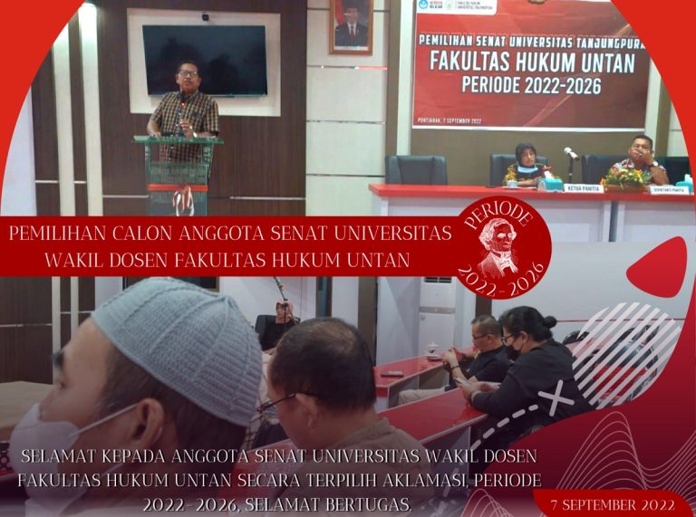 FAKULTAS HUKUM UNIVERSITAS TANJUNGPURA PERIODE 2022-2026 Sehubungan akan berakhirnya masa bakti Senat Universitas Tanjungpura Periode 2018-2022, maka perlu dilakukan Pemilihan. Menindaklanjuti hal tersebut, maka dilaksanakannya Pemilihan Calon Anggota Senat Universitas Wakil Dosen Fakultas Hukum UNTAN Periode 2022-2026. Adapun untuk Calon…